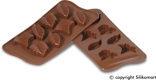 Silikomart 1 stampo in silicone linea Easy choc modello Nature.Lo satmpo comprende 8 formine di differenti foglie.Come dei veri proffesionisti del cioccolato, con i nuovi stampi Easy Choc di Silikomart potete realizzare a casa vostra dei perfetti cioccolatini o raffinati mini-dessert, unici nella forma grazie al design esclusivo. Gli stampi Easy Choc garantiscono semplicit d'uso, flessibilit, durata e atossicit. Utilizzabile in formo, max +230, in microonde e in frezzer -60.In foto raffigurazione dello stampo sia davanti che retro, acquistando questo prodotto si acquista uno stampo singolo.