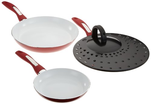 TV Das Original 02478 Bratmaxx Padella a induzione in ceramica, set da 4 incluso paraschizzi, colore: Rosso